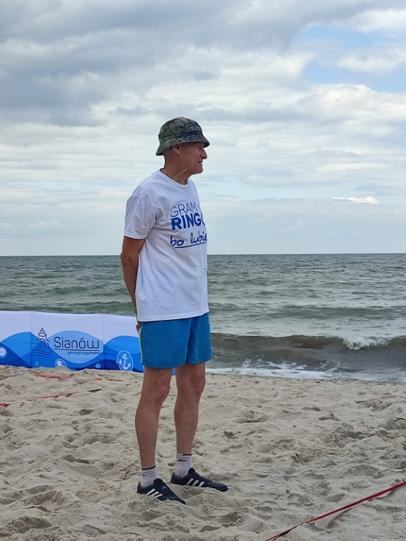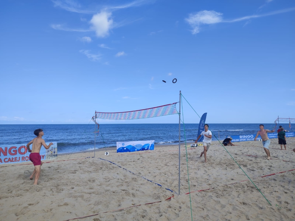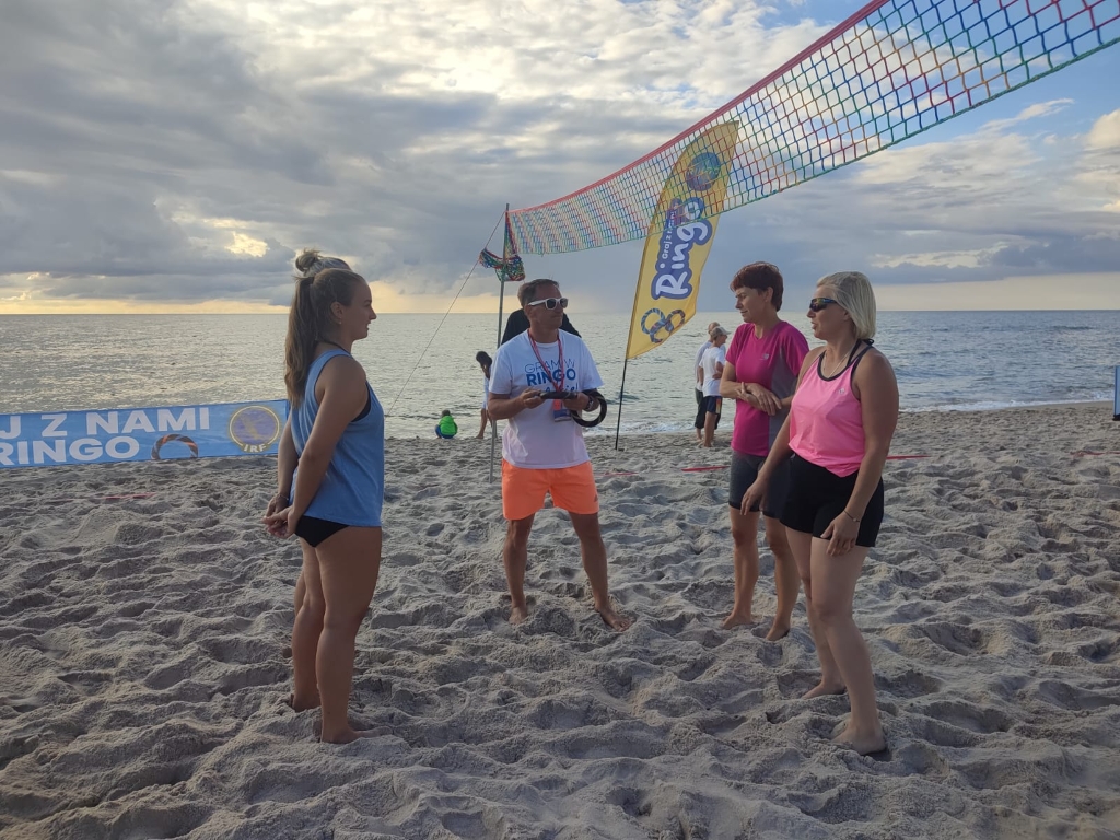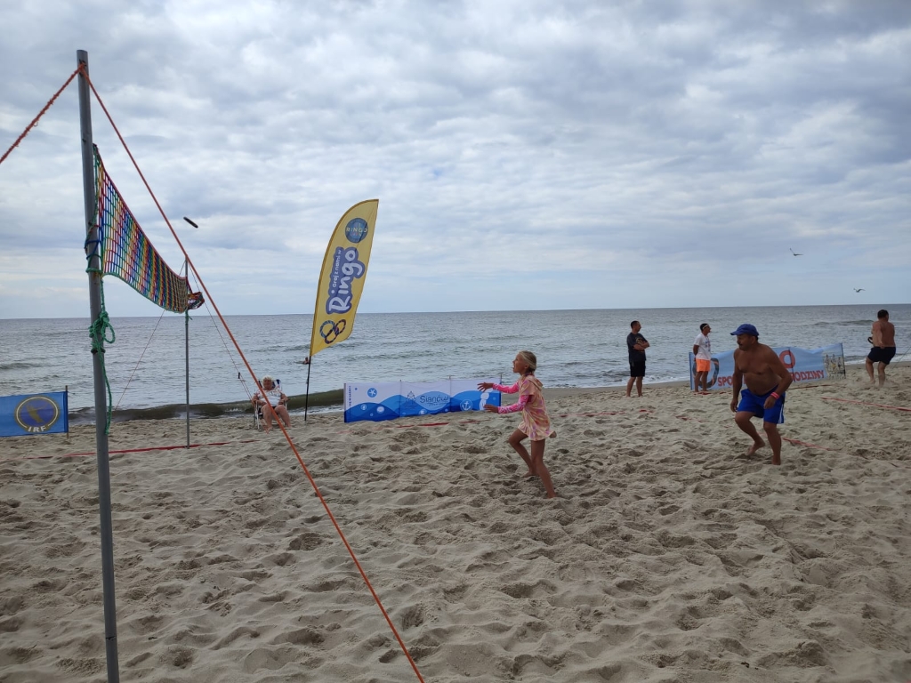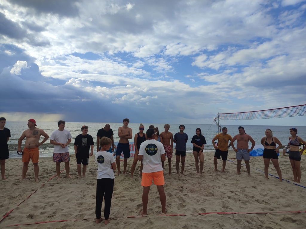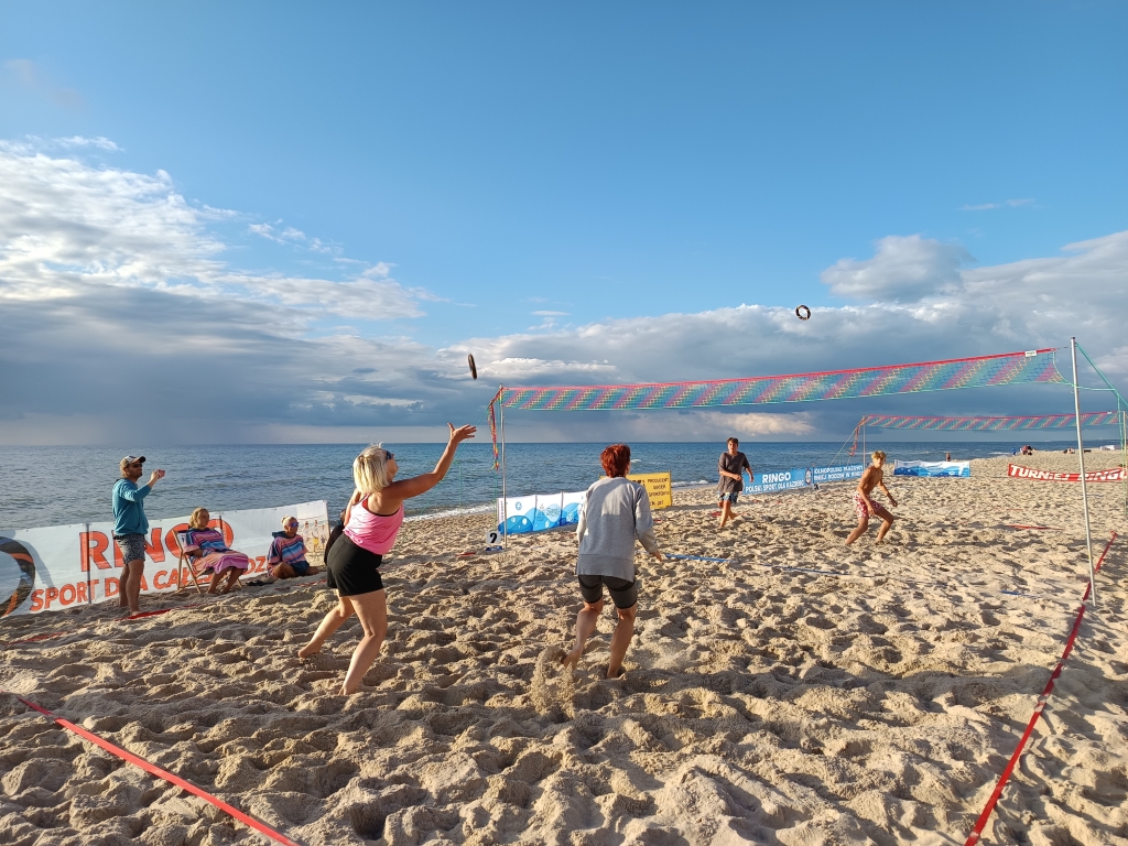 W ostatni dzień lipca plaża w Łazach stała się areną sportowych emocji – odbył się tu III Nadmorski Turniej Ringo, który zgromadził ponad 80 zawodników z całej Polski, a także gości z zagranicy. Rywalizacja toczyła się w czterech kategoriach, a uczestników przywitał organizator i sędzia główny turnieju – Sebastian Wroński. Na rozpoczęcie rozgrywek przedstawił przepisy gry, system punktacji oraz – z pomocą zawodników – przeprowadził krótki mecz pokazowy. Zawody rozgrywane były systemem „każdy z każdym”, do jednego wygranego seta, do 15 punktów. Mecze obfitowały w zwroty akcji i zacięte pojedynki – wszystko w atmosferze fair play, na tle pięknego, nadmorskiego krajobrazu. Emocji nie brakowało ani na boisku, ani wśród licznie zgromadzonych kibiców, którzy głośno dopingowali zawodników i nagradzali ich brawami – szczególnie za efektowne pady na piasek w walce o ringo. Najstarszą uczestniczką zawodów była pani Ania (72 lata) z Radoszyc, natomiast najmłodszą – 5-letnia Karolina z Legionowa. W wydarzeniu wzięli udział zawodnicy z różnych zakątków Polski, m.in. z Wadowic, Chorzowa, Pabianic, Krakowa, Poznania, Warszawy, Dąbrowy Górniczej, Sosnowca, Rybnika i Łodzi. Turniej miał również wymiar międzynarodowy – zagrali w nim zawodnicy z Australii i Szwajcarii.