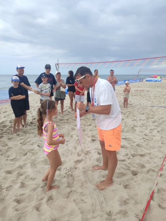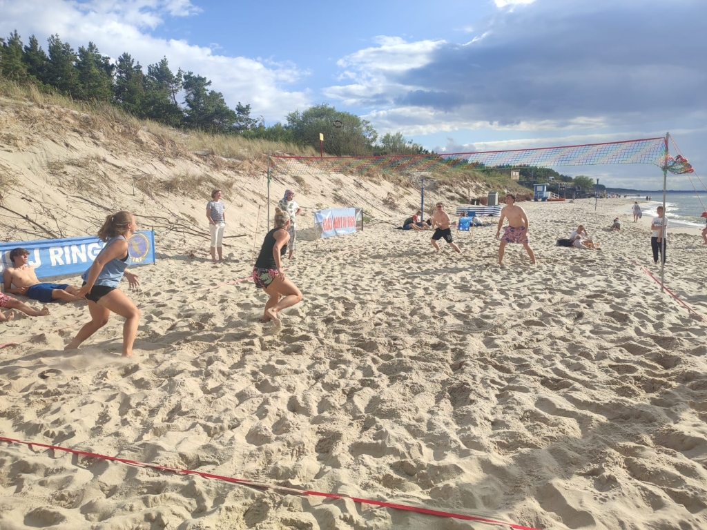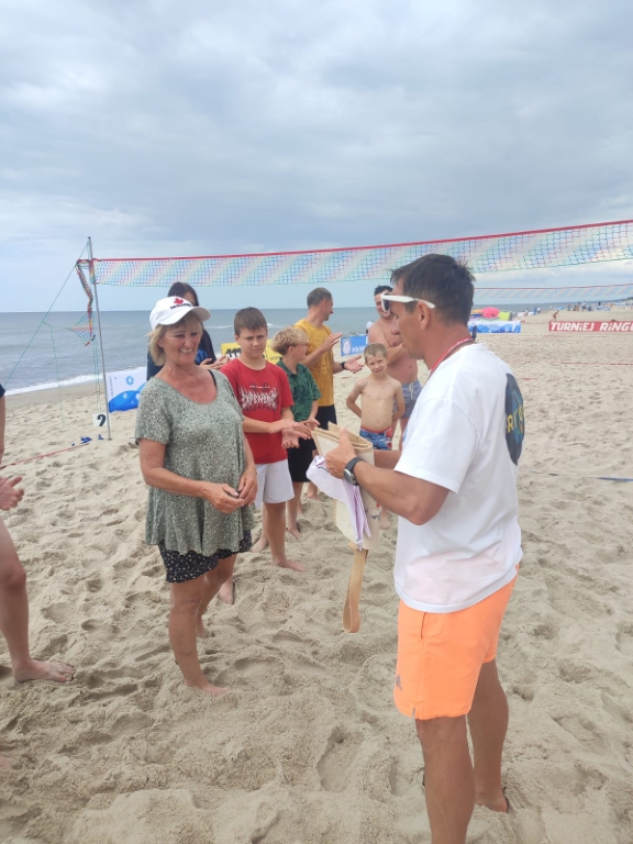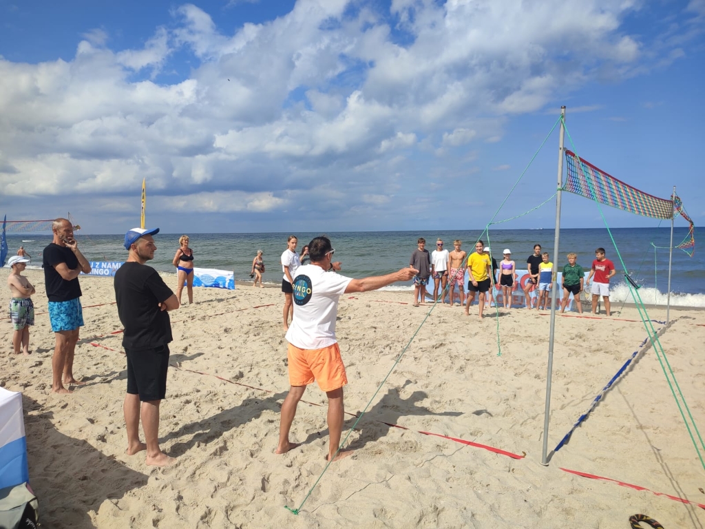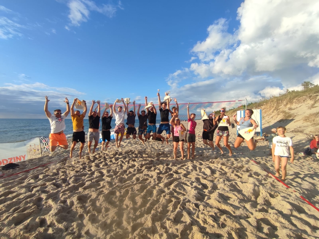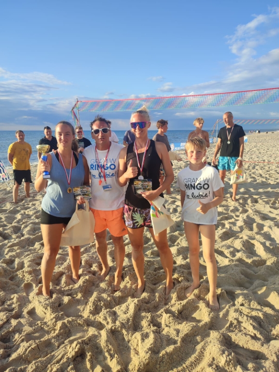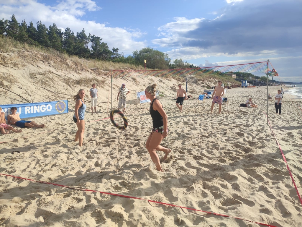 W ostatni dzień lipca plaża w Łazach stała się areną sportowych emocji – odbył się tu III Nadmorski Turniej Ringo, który zgromadził ponad 80 zawodników z całej Polski, a także gości z zagranicy. Rywalizacja toczyła się w czterech kategoriach, a uczestników przywitał organizator i sędzia główny turnieju – Sebastian Wroński. Na rozpoczęcie rozgrywek przedstawił przepisy gry, system punktacji oraz – z pomocą zawodników – przeprowadził krótki mecz pokazowy. Zawody rozgrywane były systemem „każdy z każdym”, do jednego wygranego seta, do 15 punktów. Mecze obfitowały w zwroty akcji i zacięte pojedynki – wszystko w atmosferze fair play, na tle pięknego, nadmorskiego krajobrazu. Emocji nie brakowało ani na boisku, ani wśród licznie zgromadzonych kibiców, którzy głośno dopingowali zawodników i nagradzali ich brawami – szczególnie za efektowne pady na piasek w walce o ringo. Najstarszą uczestniczką zawodów była pani Ania (72 lata) z Radoszyc, natomiast najmłodszą – 5-letnia Karolina z Legionowa. W wydarzeniu wzięli udział zawodnicy z różnych zakątków Polski, m.in. z Wadowic, Chorzowa, Pabianic, Krakowa, Poznania, Warszawy, Dąbrowy Górniczej, Sosnowca, Rybnika i Łodzi. Turniej miał również wymiar międzynarodowy – zagrali w nim zawodnicy z Australii i Szwajcarii.