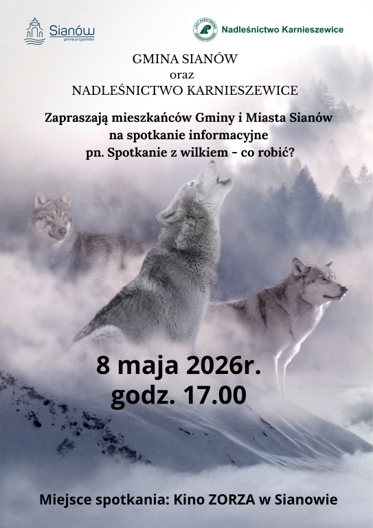 W uwagi na zmiany w środowisku naturalnym oraz coraz częstszym pojawianiem się na naszym terenie wilków – Gmina Sianów wraz z Nadleśnictwem Karnieszewice serdecznie zapraszają na spotkanie informacyjne pn. „Spotkanie z wilkiem – co robić?”.