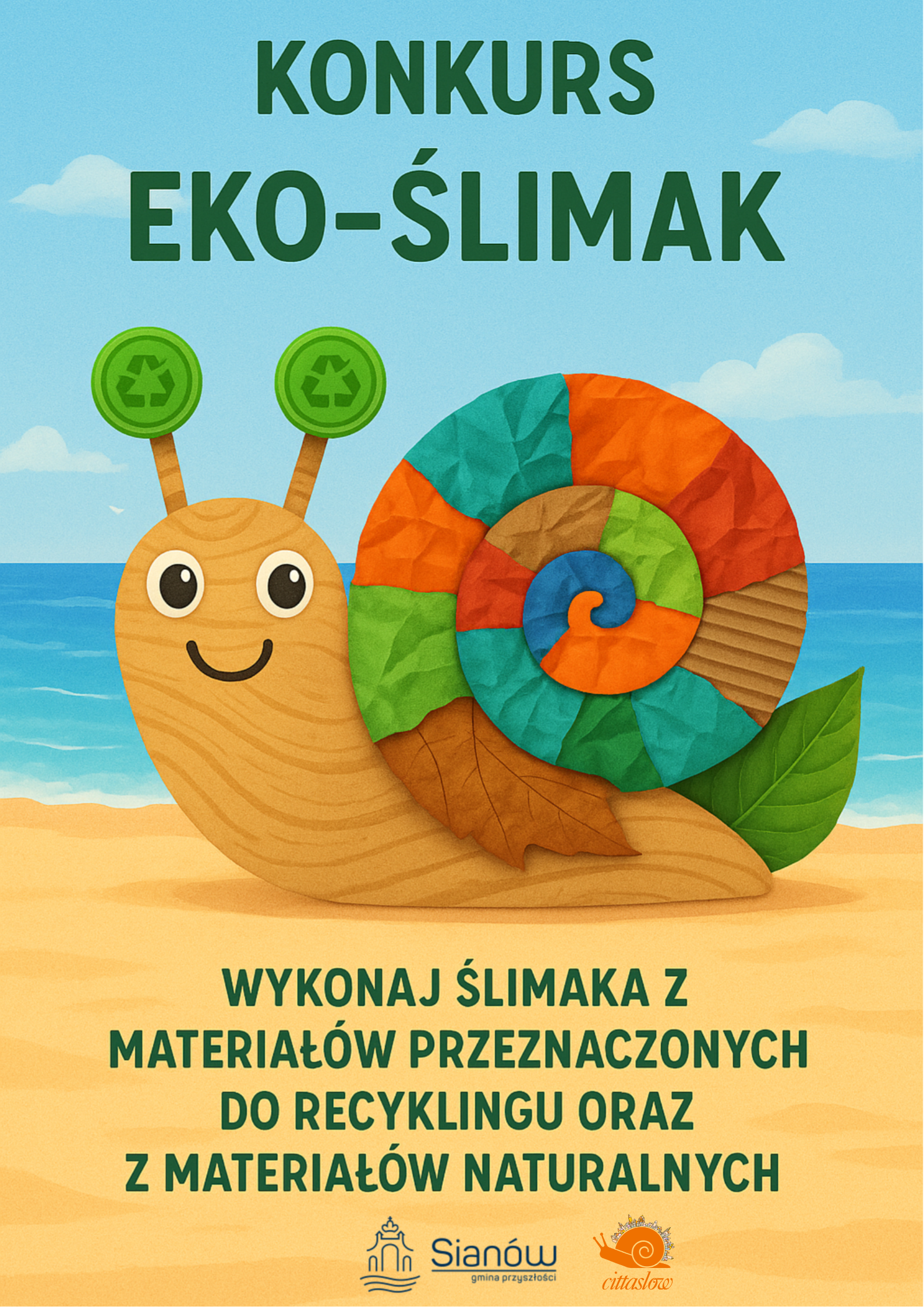 Z okazji Dnia Ślimaka (24 maja) oraz zbliżającego się XVI Festiwalu Miast Cittaslow w Sianowie (ślimak jest symbolem stowarzyszenia), który odbędzie się w dnia 14 czerwca 2025r. na Placu pod Lipami w Sianowie, Gmina Sianów ogłasza konkurs na stworzenie EKO-ŚLIMAKA!